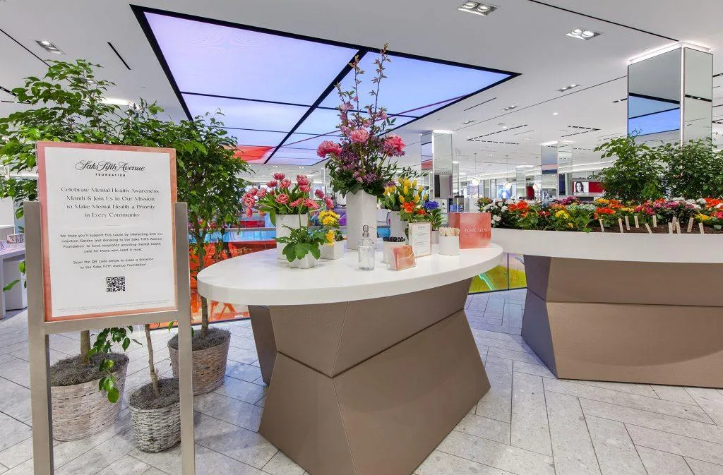 And at the other end of the scale, Saks Fifth Avenue in NYC celebrated Mental Health Awareness Month in May with an “Intention Garden” on its second floor where shoppers could plant an intention in an on-site “garden” and write thank-you postcards to be mailed later to someone who had helped them on their mental health journey.