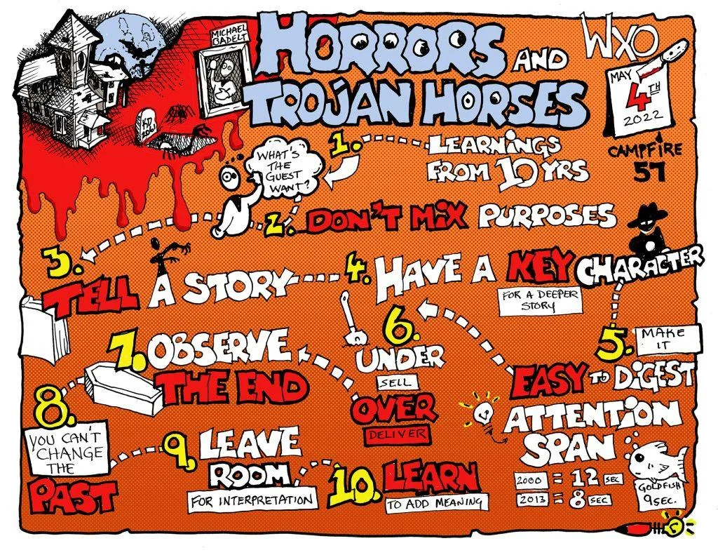 From all of this experimentation, Badelt was able to identify some key actions that helped create a Trojan Horse experience. Although these are specific to the attractions world, we think they could be used across a number of sectors. He: