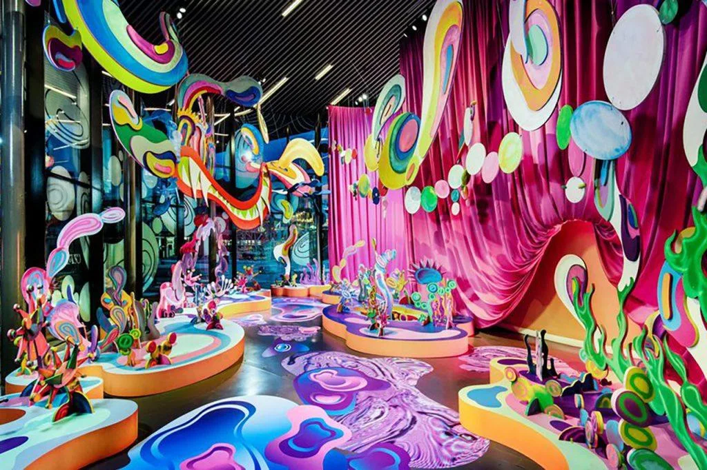 A self-confessed maximalist with a penchant for cartoons, Chan has collaborated with digital artists Songyee Kim and Thibaut Evrard to create an AR experience that acts as a portal between the digital and physical world via a filter on visitors’ smartphones that allows them to interact with the space. Called Your Ship Has Landed, the exhibition, which runs until March, aims to bridge the gap between our new-found digital lifestyles and our renewed experience of the natural world. The aim is to lift people out of the current gloom into a fun, fantastical realm.