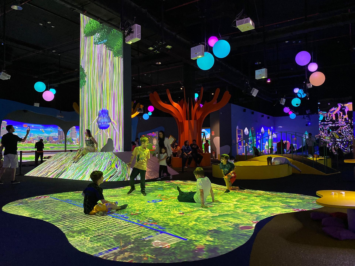 Bringing together high-quality graphics, motion sensors and classic game mechanics, the park lets guests experience the world of mixed reality, meaning they can travel through different realms like the ocean, outer space and the jungle. Over 100 projectors, 20 multimedia servers, multiple depth cameras, motion sensors, and the company’s own software were used to create the park, which boasts a six-metre projection waterfall. Visitors are assigned a digital avatar that accompanies them through the park via personal RFID wristbands.