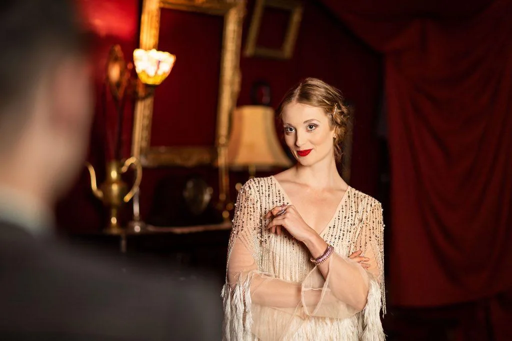 - As we arrived at the curtain, a man in a sharp 1920s suit and hat greeted us, speaking like a 1920s New Yorker. Instantly we’re pulled in. This wasn’t a service person leading us in, it was a proper actor / interactor dropping us straight into the story. I especially like the way he told us to turn our mobile phones off, while talking staying in character and even, ‘in era’. “Hey, just a reminder, guys,”, he said,”It’s 1924. This of course means there’s no mobile phones, so you want to be switching those off.”