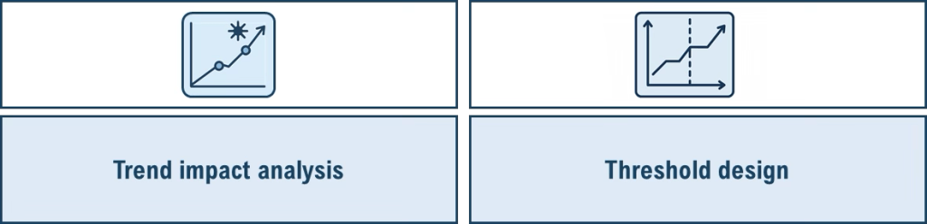 - Threshold design. This method (or Regression Discontinuity Design) is powerful when a specific rule determines who receives a treatment. Imagine a loyalty programme that grants higher status to customers once they spend over $500. Without the programme’s effect, the behaviour of customers who spend $505 should be nearly identical to those who spend $495. Any sharp, sudden jump in their spending or visit frequency at that exact cut-off point can be confidently attributed to the initiative, providing strong causal evidence without needing a control group.