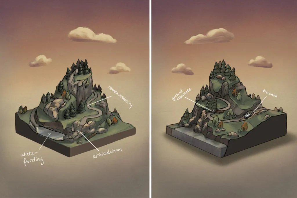 The immersive website featured vignettes of the new vehicle model in different environments, each telling a story of how the car excels in that scene – for example, one vignette showed the Jeep Cherokee traversing a variety of natural terrain, going up steep inclines, and fording flooded areas of the road.